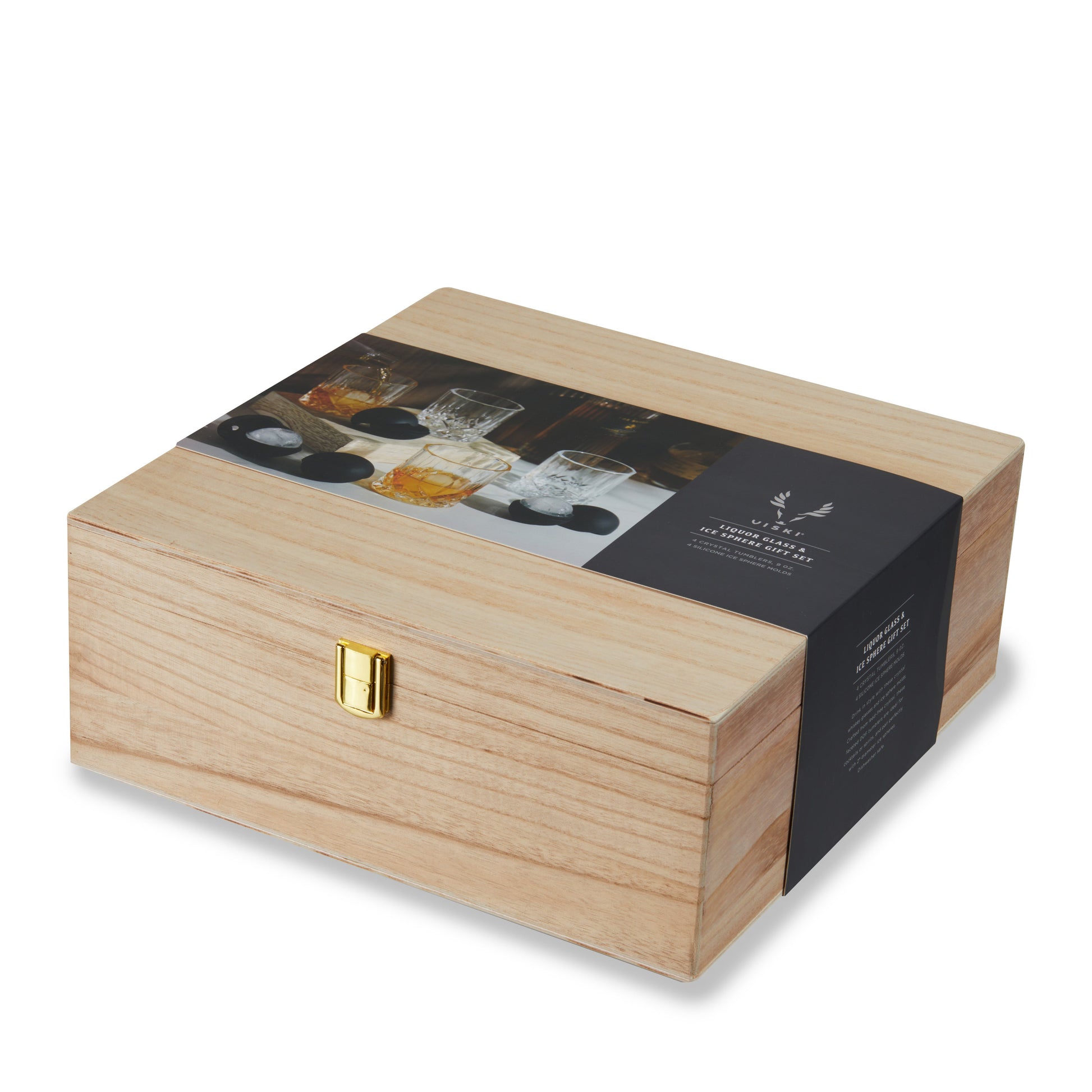 Nothing beats a pour of your favorite whiskey in a crystal glass with a giant ice sphere. This gift set includes 4 gorgeous faceted tumblers and 4 silicone ice sphere molds packaged in a wooden gift box for a luxurious gifting experience.