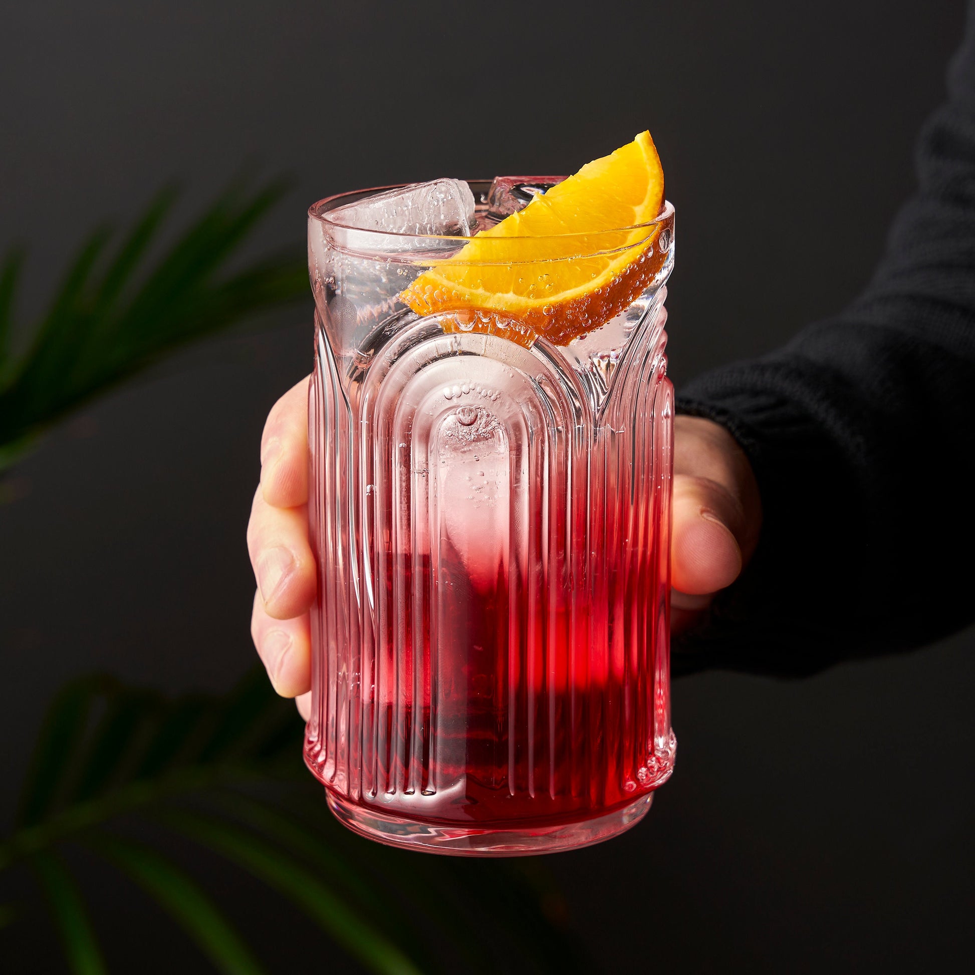 Repeating 3D arches pressed into glass make these vintage-style crystal highball glasses a unique way to serve cocktails or use as water glasses. Dishwasher safe and durable, they bring a retro Art Deco touch to your glassware collection.