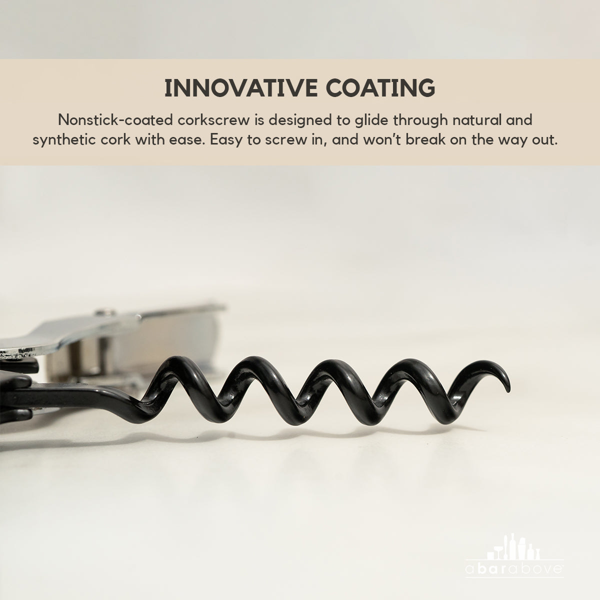- Coated Wine Opener: Stop destroying corks! This nonstick-coated wine bottle opener slides through the cork without tearing it up, and its double-hinged design makes it easy to use.