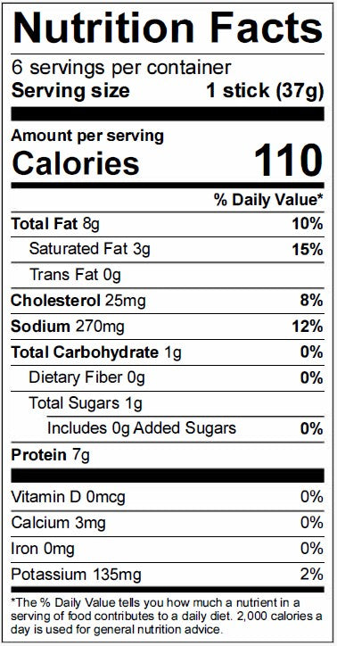 - Smoked, small-batch, 8 oz. (1.33 oz. per serving) coarse ground snack stick