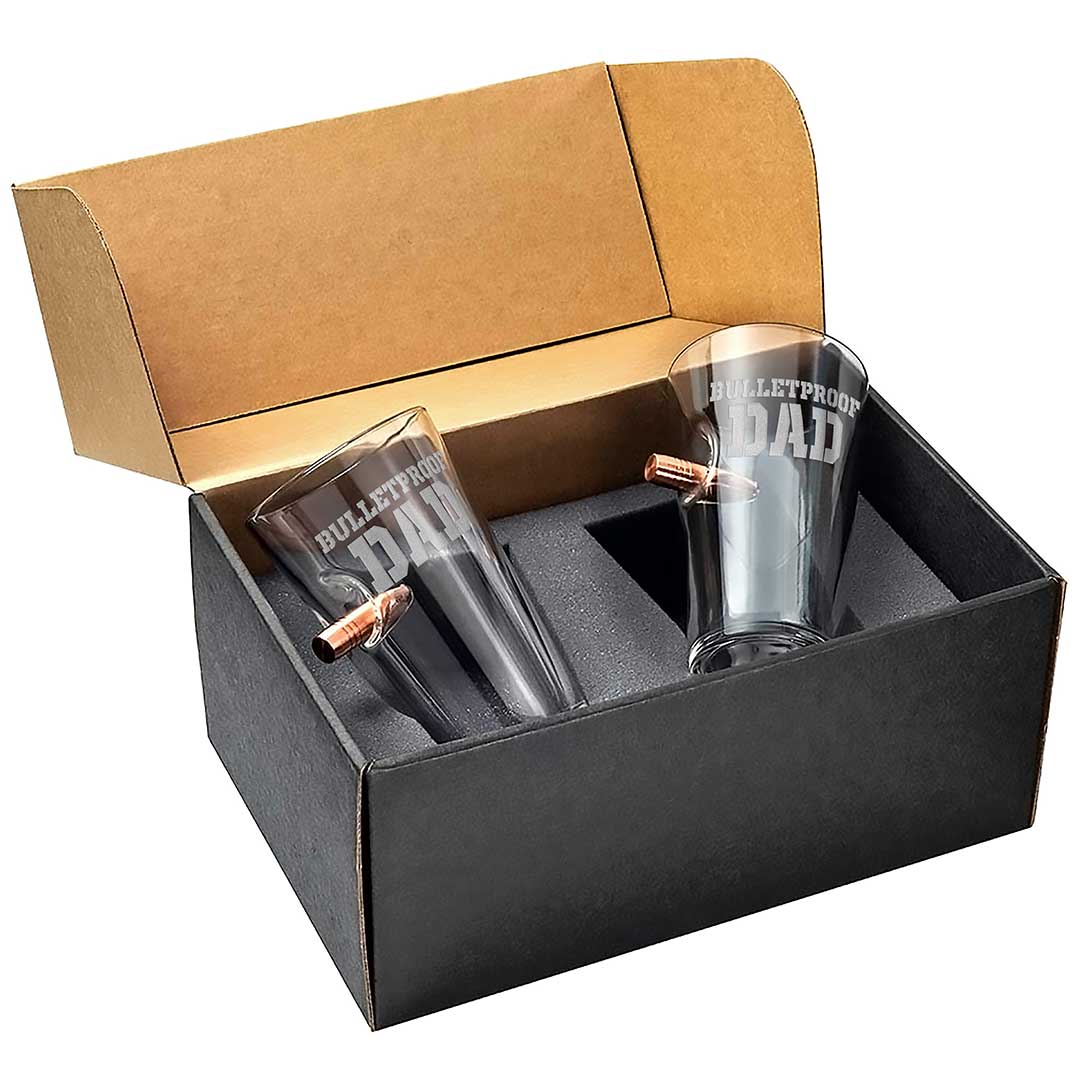 Glasses come individually packaged in a custom display box ready for gifting on Father's Day. All packaging and raw materials are made in the USA.