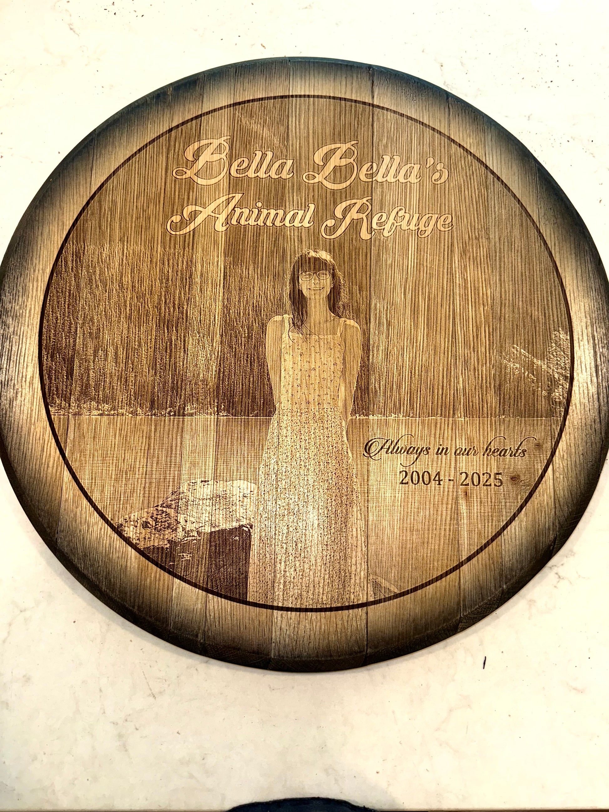Custom Commemorative Photo Engraved Whiskey Barrel Head