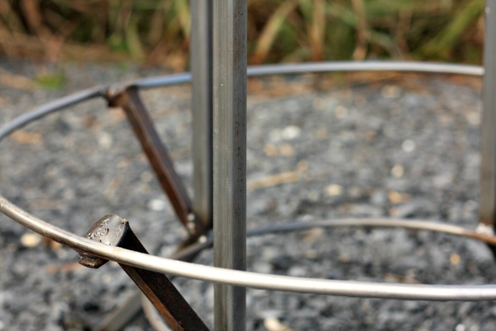 This funky new design is a bar height pub table made from naturally distressed reclaimed wood and a raw steel industrial metal base, for a classy modern look that goes great in any setting! Comes complete with vintage railroad spikes supporting the foot catcher :)