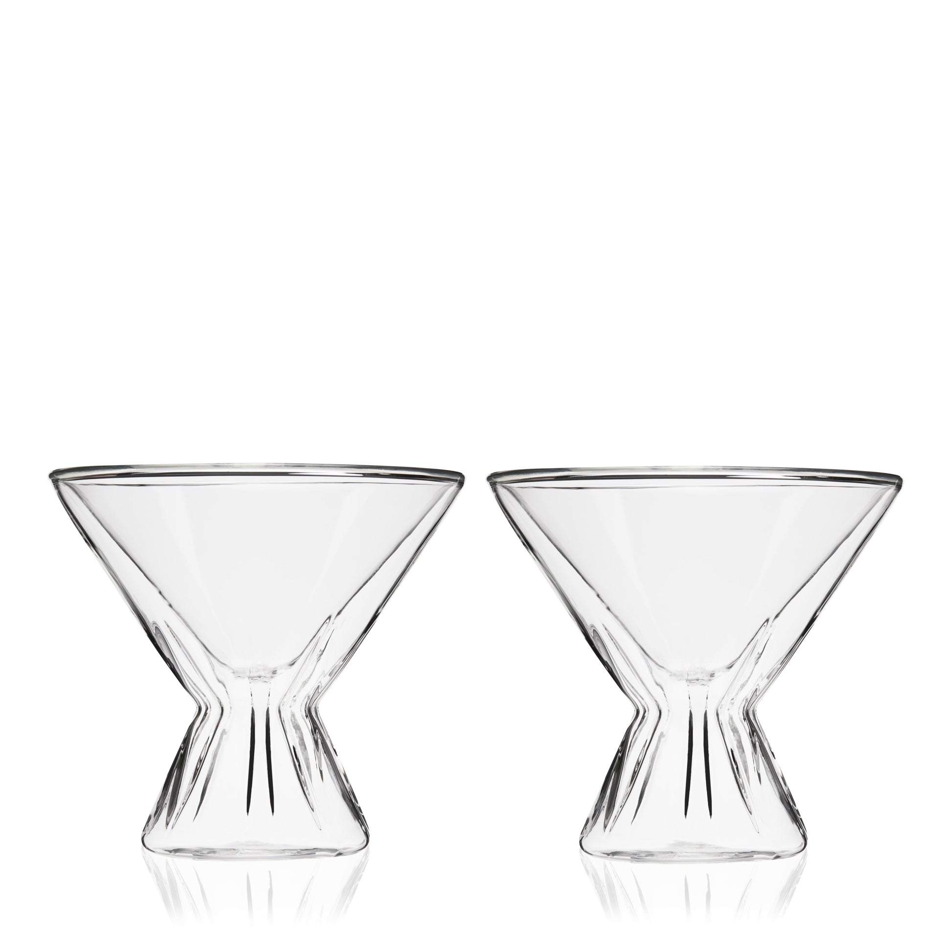 Take time to savor your cocktail. The double-walled design of these stemless martini glasses maintains your drink’s temperature and prevents condensation for a smooth sipping experience. Made from borosilicate glass with a cut-glass design.
