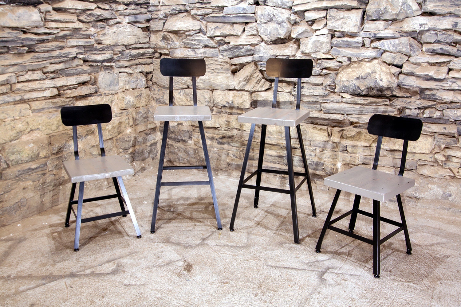 Urban industrial style at its best! These bar stools are the perfect balance of funky character with a modern styling. Great for your kitchen, basement bar, micro brewery, restaurant bar stool seating area or coffee house cafe. Made from welded industrial metal legs and with a comfortable curved back and reclaimed wood seat, they are cool, durable and bomb-proof! All our stools also ship with heavy duty swivel glides on the feet to protect your floors.