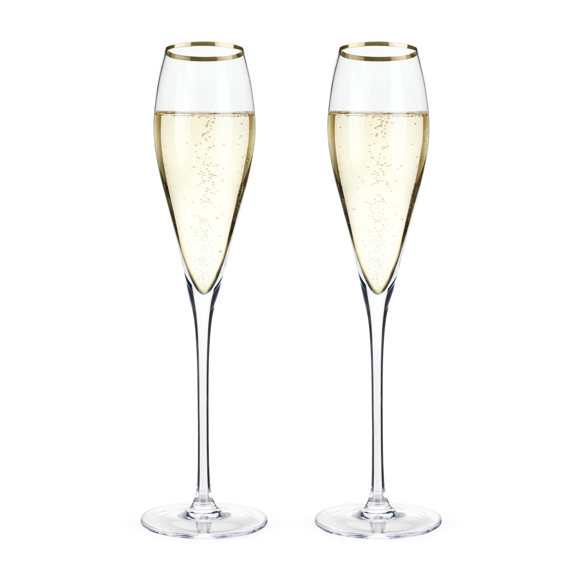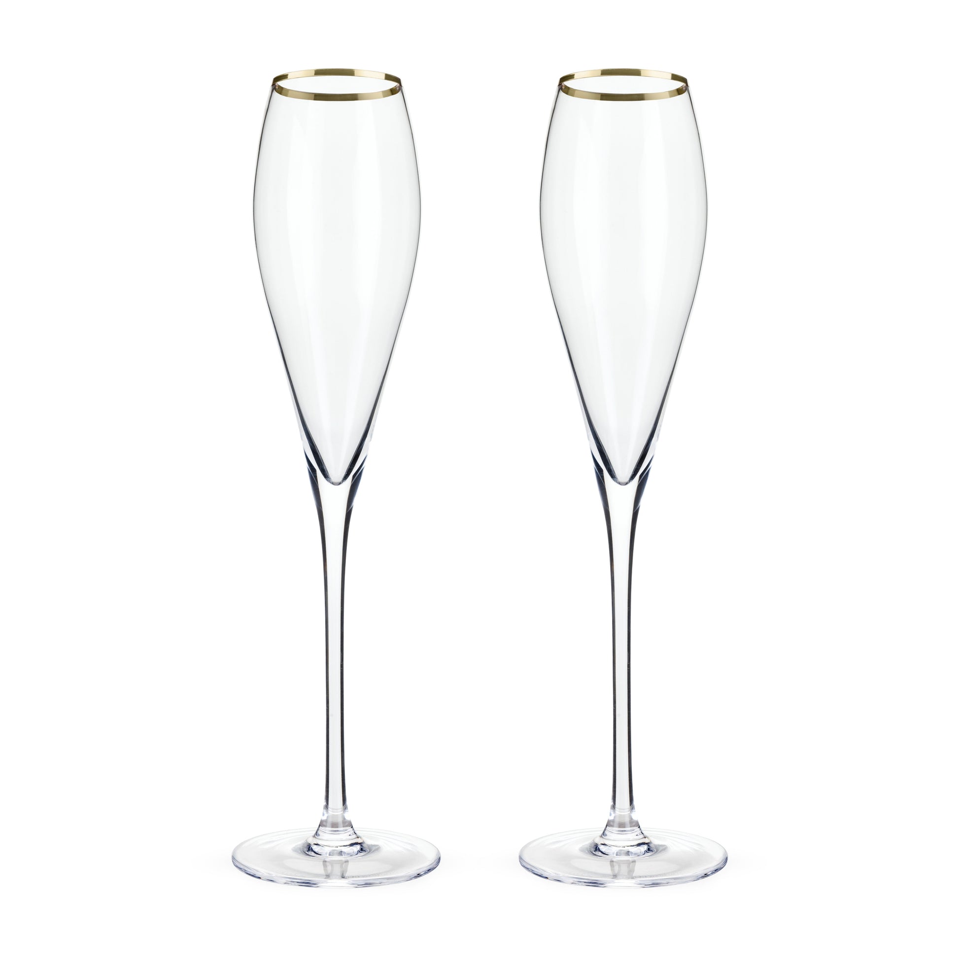 Gold-Rimmed Crystal Champagne Flutes Set of 2