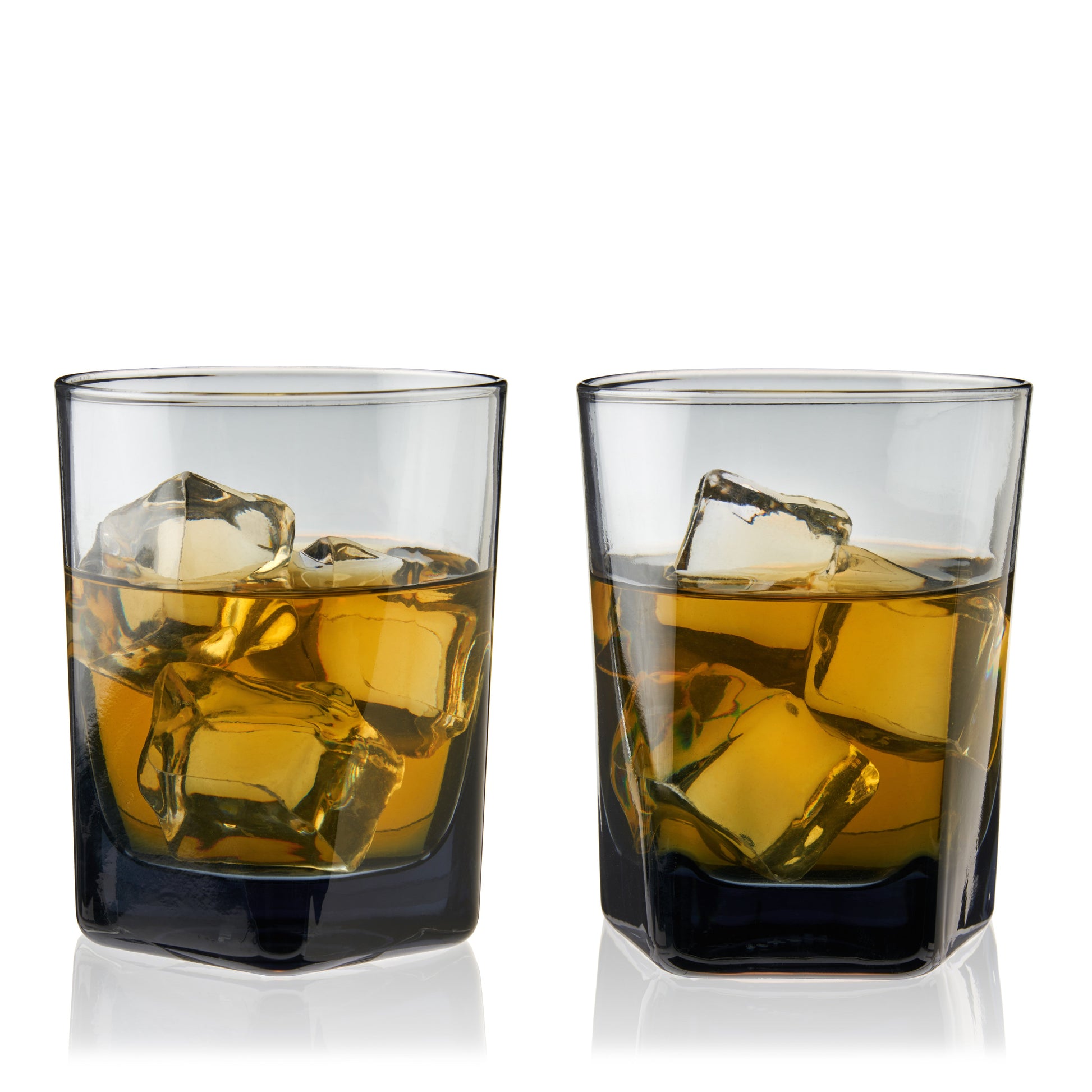 Hexagonal Crystal Double Old Fashioned Glasses in Smoke
