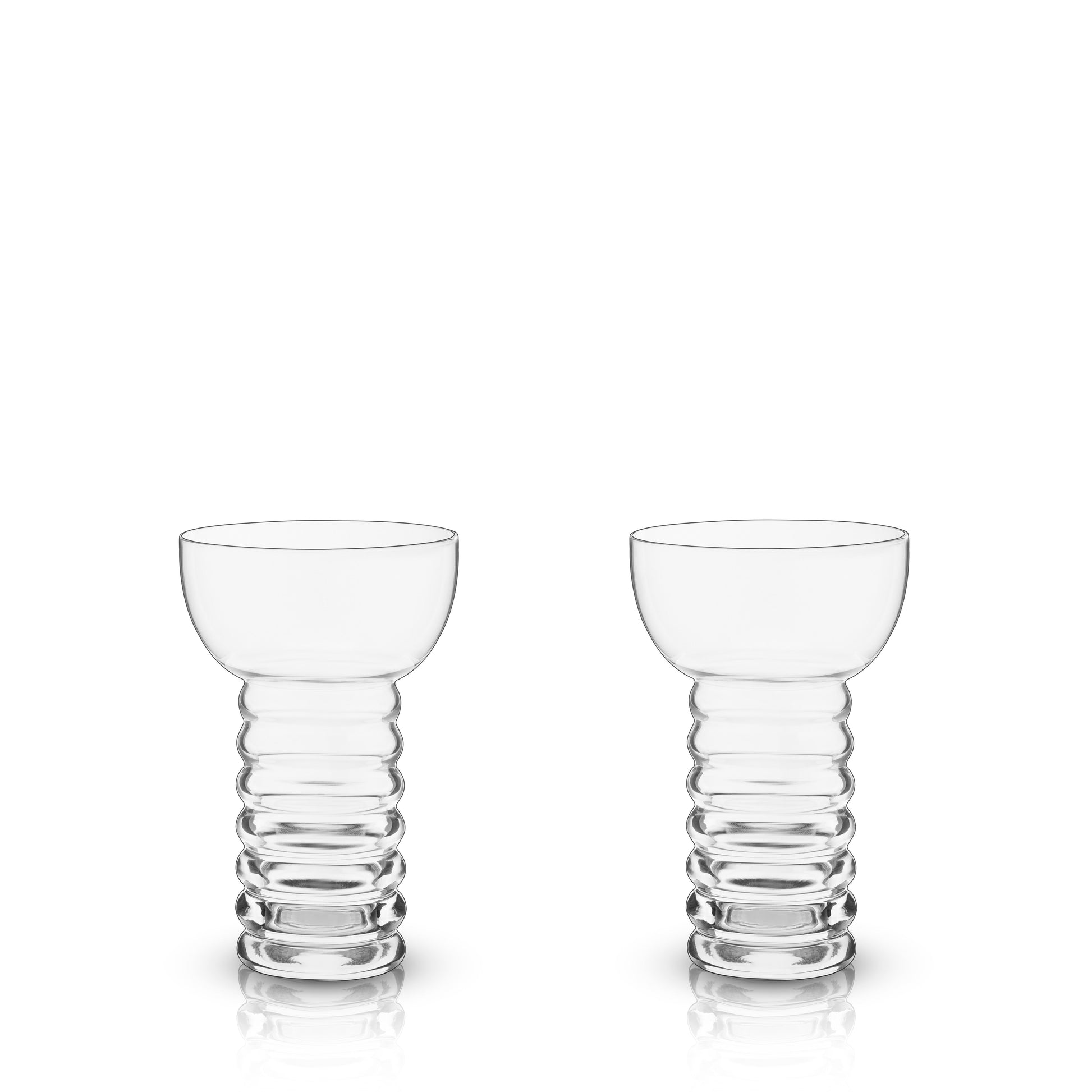 The Pearl Diver is a classic, silky cocktail with a storied past - and its very own glass style. Invented by the grandfather of Polynesian Pop, this infamous drink borrows from the 1930s novelty of the South Pacific, lending an exotic silhouette to the cocktail landscape with its ribbed stem and distinctive wide bowl. Viski's version retains the iconic shape, but updates and refines with a lead-free crystal construction.