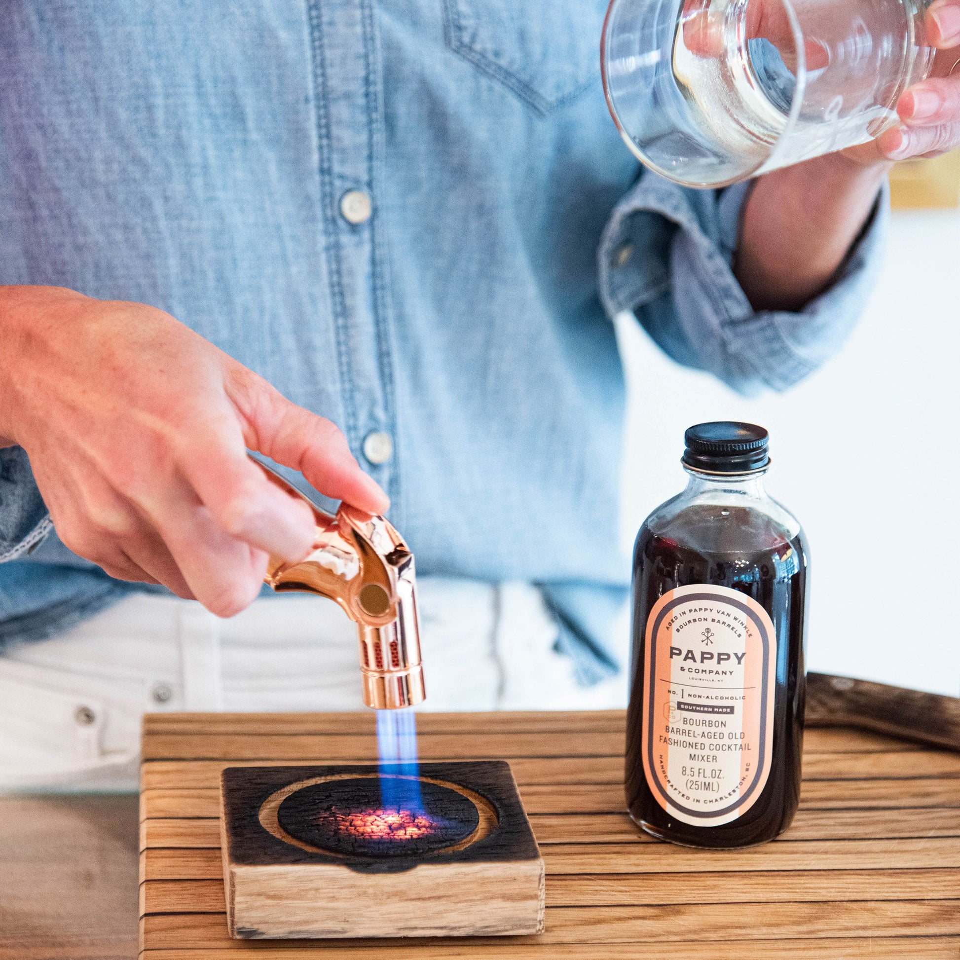 A multi-sensory drinking experience, smoked cocktails aren't just for mixologists; in fact, they're easy to create at home with our one-of-a-kind Pappy & Company Smoked Cocktail Kit. The custom set includes an authentic Pappy Van Winkle Whiskey Barrel Wood Piece, a mini culinary torch emblazoned with the Pappy & Company logo, and two 8-ounce Pappy & Company rocks glasses. Pro tip: Chill your glasses before giving them a smoke bath (the cold helps the flavor stick) by carefully lighting the stave piece with the torch and covering the smoldering wood with the glass, which is customized to fit the included stave piece. Pour in the cocktail of your choice. We're partial to a Manhattan.