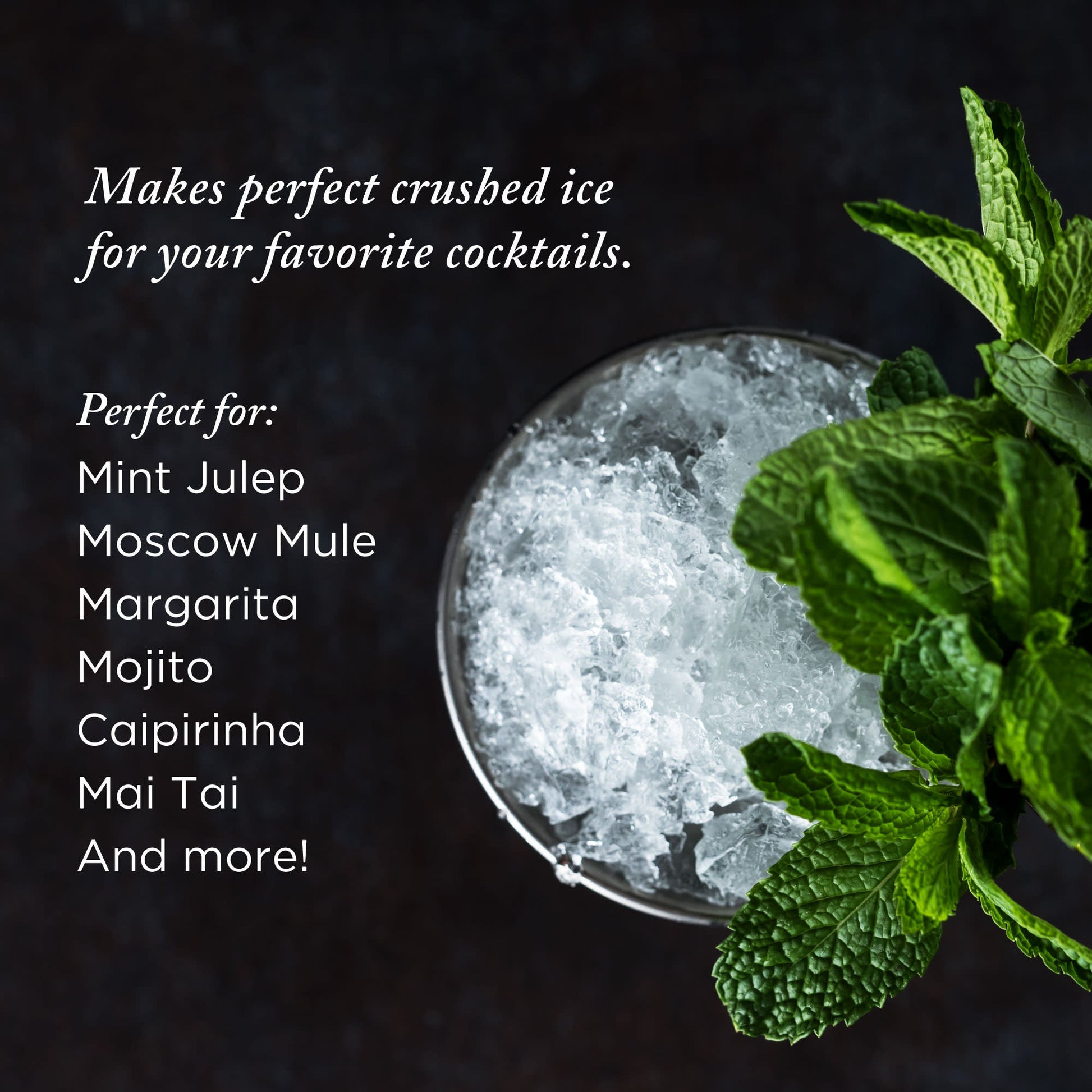 This sturdy canvas bag has reinforced seams for a lifetime of use and is sized for larger quantities of ice. It’s perfect for crushing fresh ice for moscow mules, mint juleps, and more.