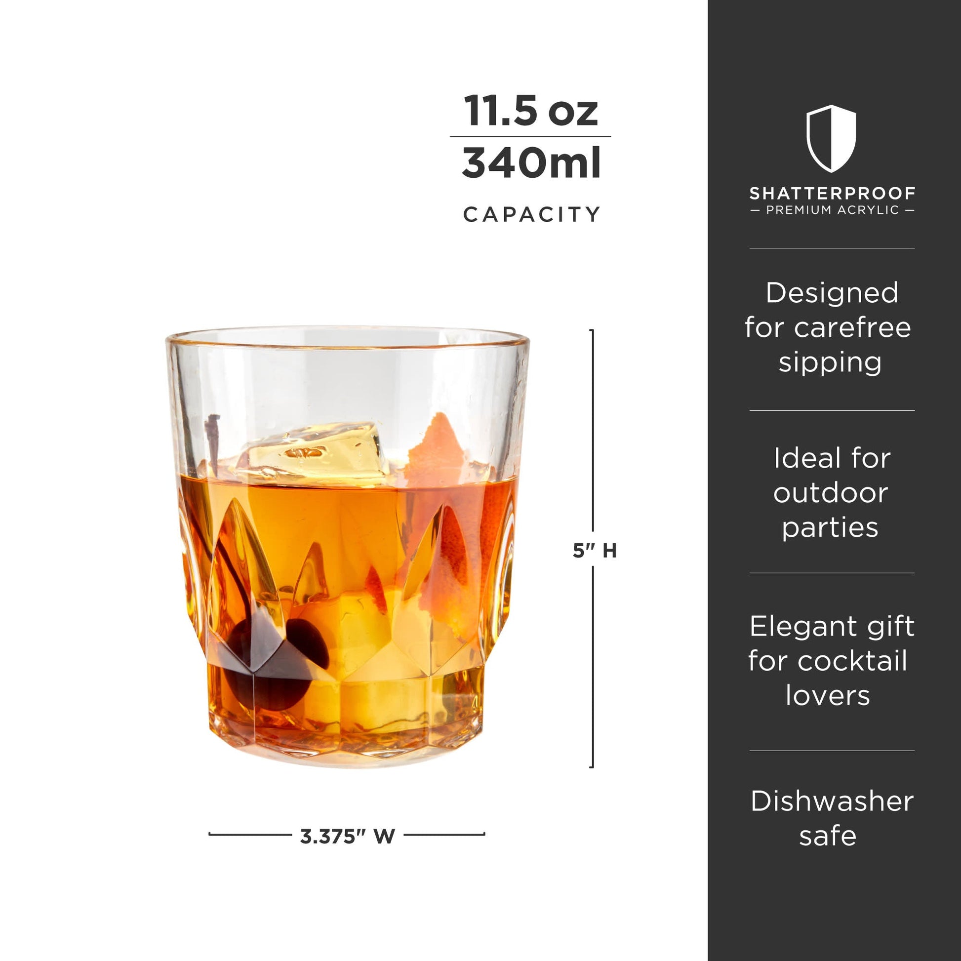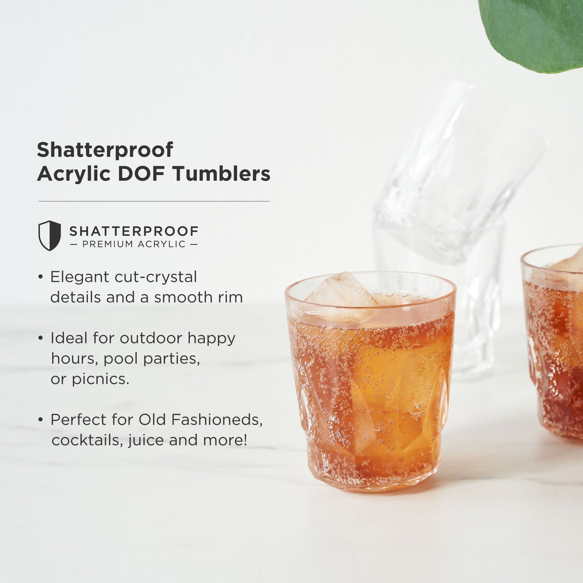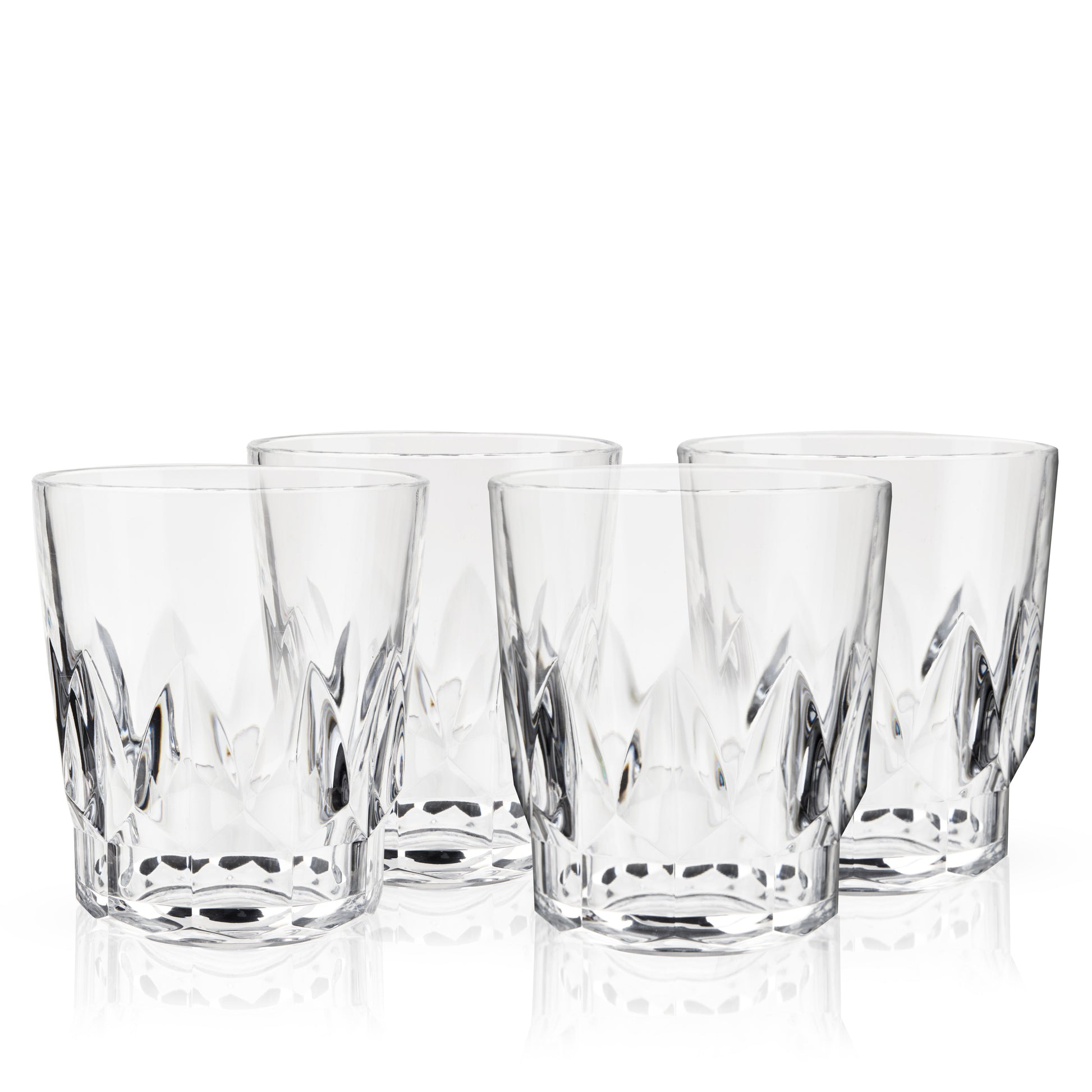 Designed for carefree sipping, these faceted Double Old Fashioned glasses are crafted from high-quality clear acrylic. With cut-crystal details and a smooth rim, these shatterproof tumblers are worthy of your finest spirits.