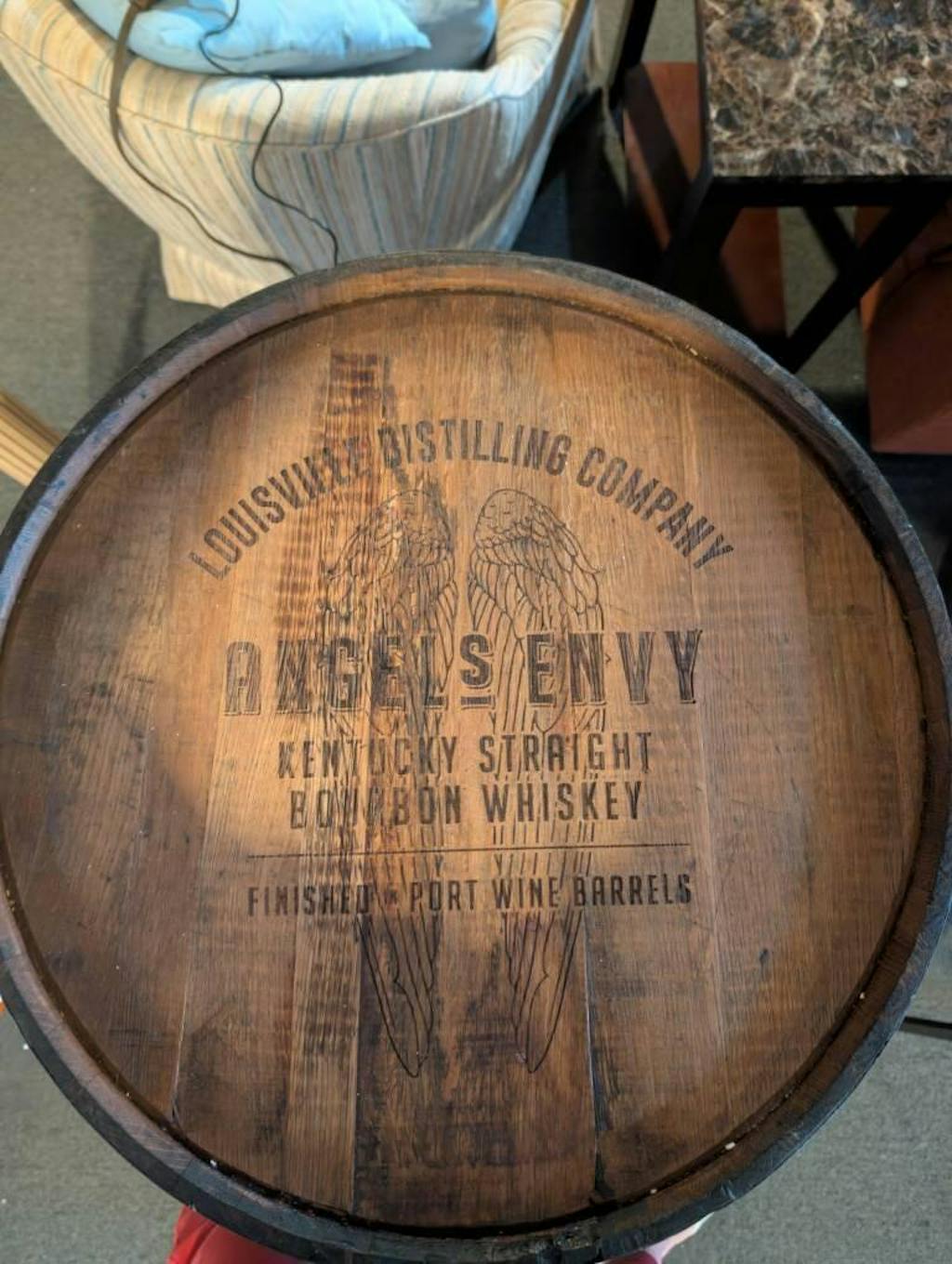 Created from a real whiskey barrel. Includes two rotating two lazy susan style shelves so you don’t have to take the bottles in front out to get to the ones in the back. Simply rotate the shelf! LED lighting over both shelves that are motion sensing. Open the doors and the lights come on so you can see you your stash! The barrel head (top) can be laser engraved with just about whatever you want; your favorite bourbon logo, your last name, your company logo, anniversary date, you name it, we’ve probably done it. We also have barrels available with the original distillery stamp on the barrel head if you would prefer that instead of a laser engraved logo. Additional charge may be necessary for certain branded barrels based on availability. Barrel is sanded, sealed, and clear-coated inside and out. If you have a preference for light, medium, or dark let us know in the "special request" field and we will try to accommodate your request. Please keep in mind that we use real, used whiskey barrels some so staining (or character) may be present on the exterior of the barrel since all whiskey barrels leak to some extent. *Any special request, please let us know in the special request box. We will do our best to accommodate your request. Due to the high level of customization offered, barrel cabinets are made to order and may take 2 weeks for production.*