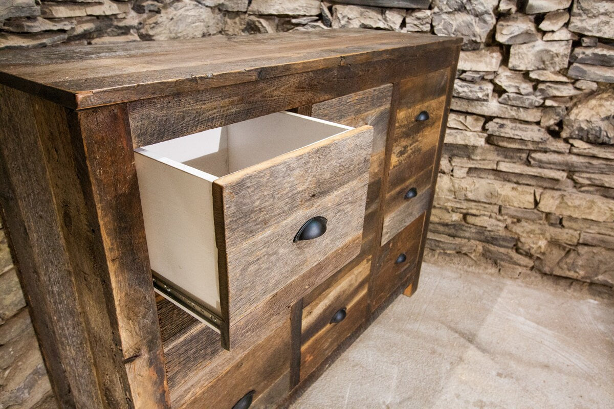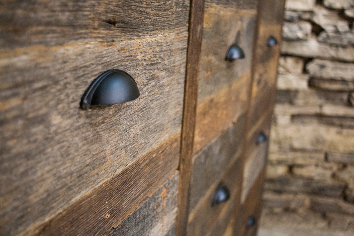 Reminiscent of British Empire campaign furniture, our Old Bombay dresser features clean, utilitarian lines that are nonetheless aesthetically alluring paired with our naturally distressed reclaimed weathered barn wood, creating a timeless elegance that can't be fabricated in any other way!